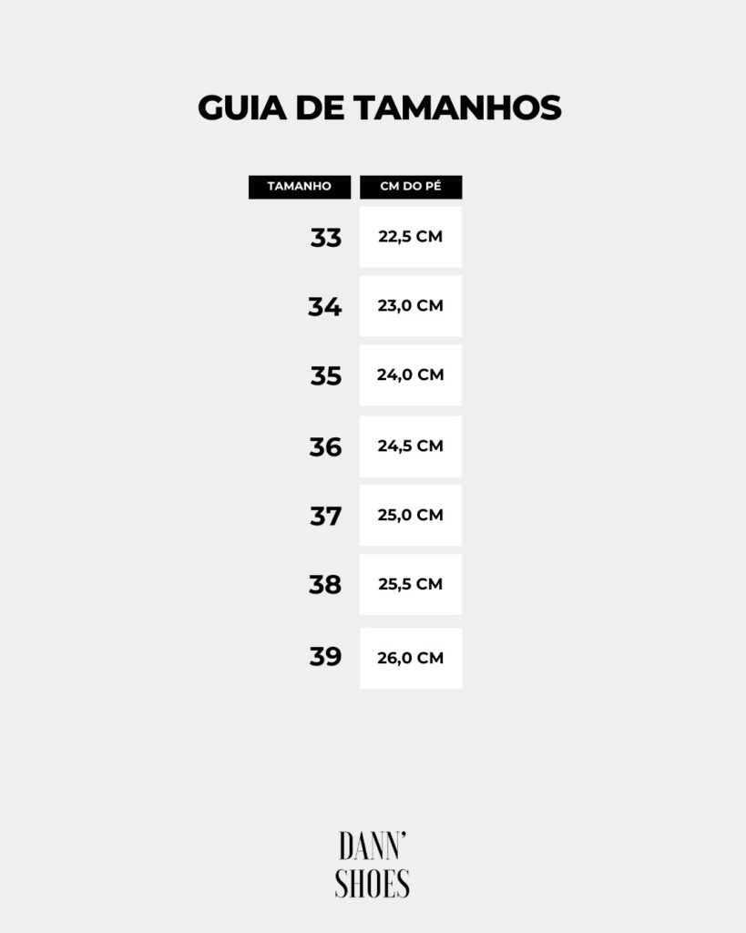 Sobre a marca: Os produtos Dann’Shoes são referência de alta qualidade e possuem a elegância no DNA. As linhas autorais, a aplicação de materiais exclusivos e o conforto máximo são pilares que formam a sua essência. Feito para mulheres que não abrem mão de destacar sua personalidade marcante em todos os momentos.
